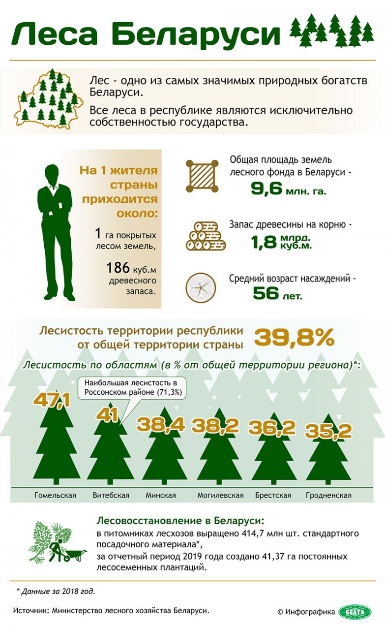 В 2018 году организациями Минлесхоза экспортировано лесопродукции на $140,6 млн. При этом если в 2018 году не экспортировался круглый лес, то в 2015-м его доля в экспорте составляла 51%. Экспорт в прошлом году осуществлялся в более чем 25 стран мира.