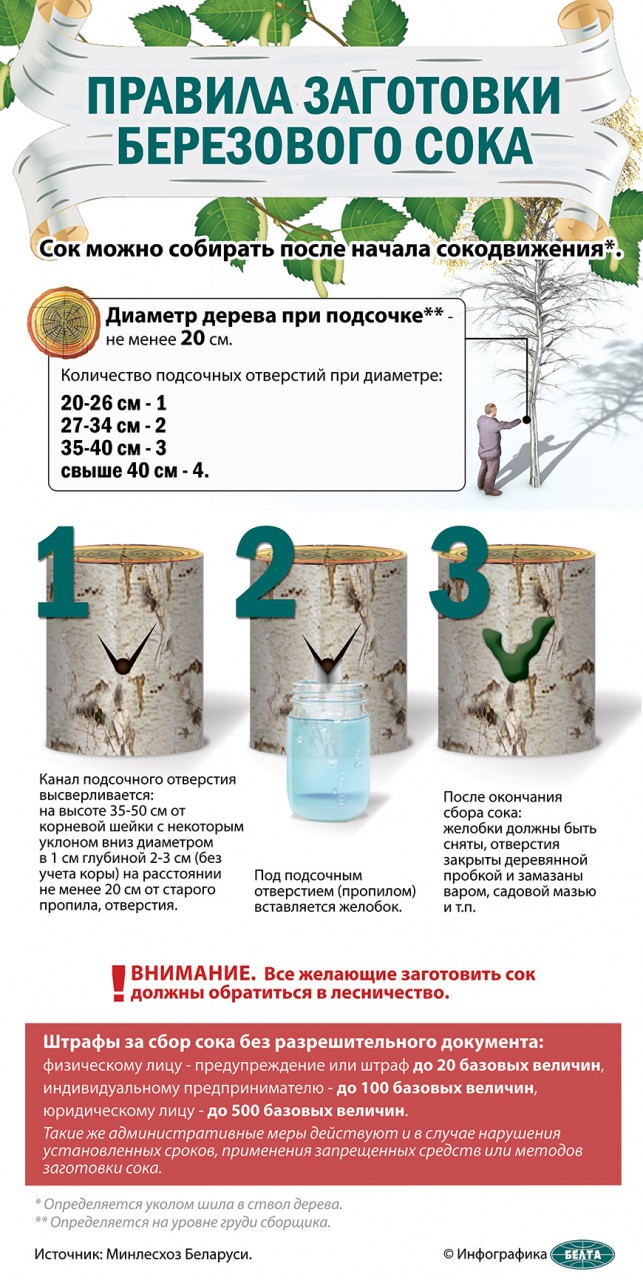 "Сезон заготовки березового сока подходит к концу. По оперативным данным, лесохозяйственные учреждения собрали уже около 10 тыс. т полезного напитка. Лидерами в нынешнем году стали лесхозы Брестской области: здесь заготовлено свыше 4 тыс. т", - сказали в пресс-службе.