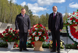 Руководитель лесной отрасли сегодня возложил цветы к скульптуре "Непокоренный человек" в Хатыни, после чего почтил память жертв Великой Отечественной войны минутой молчания.