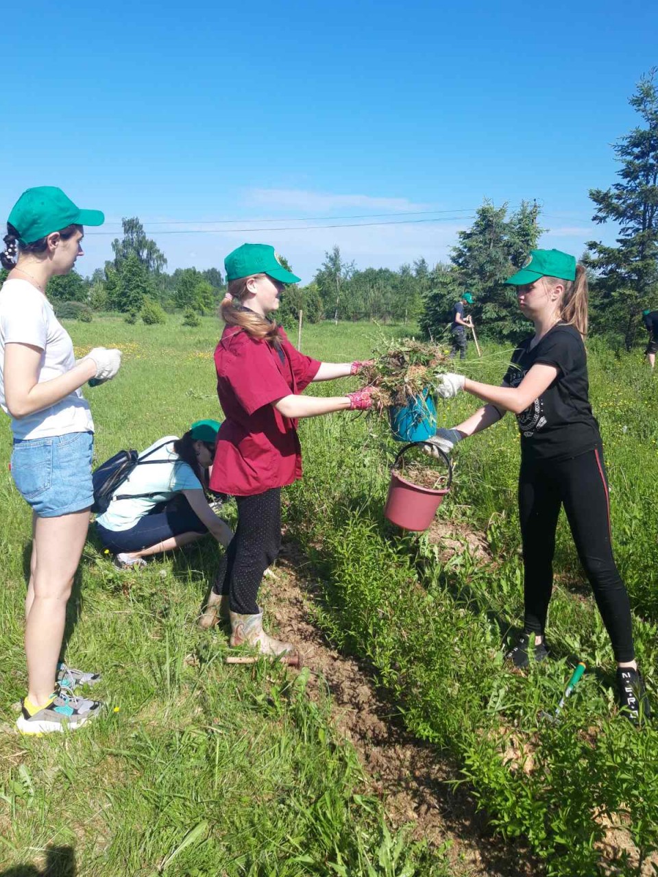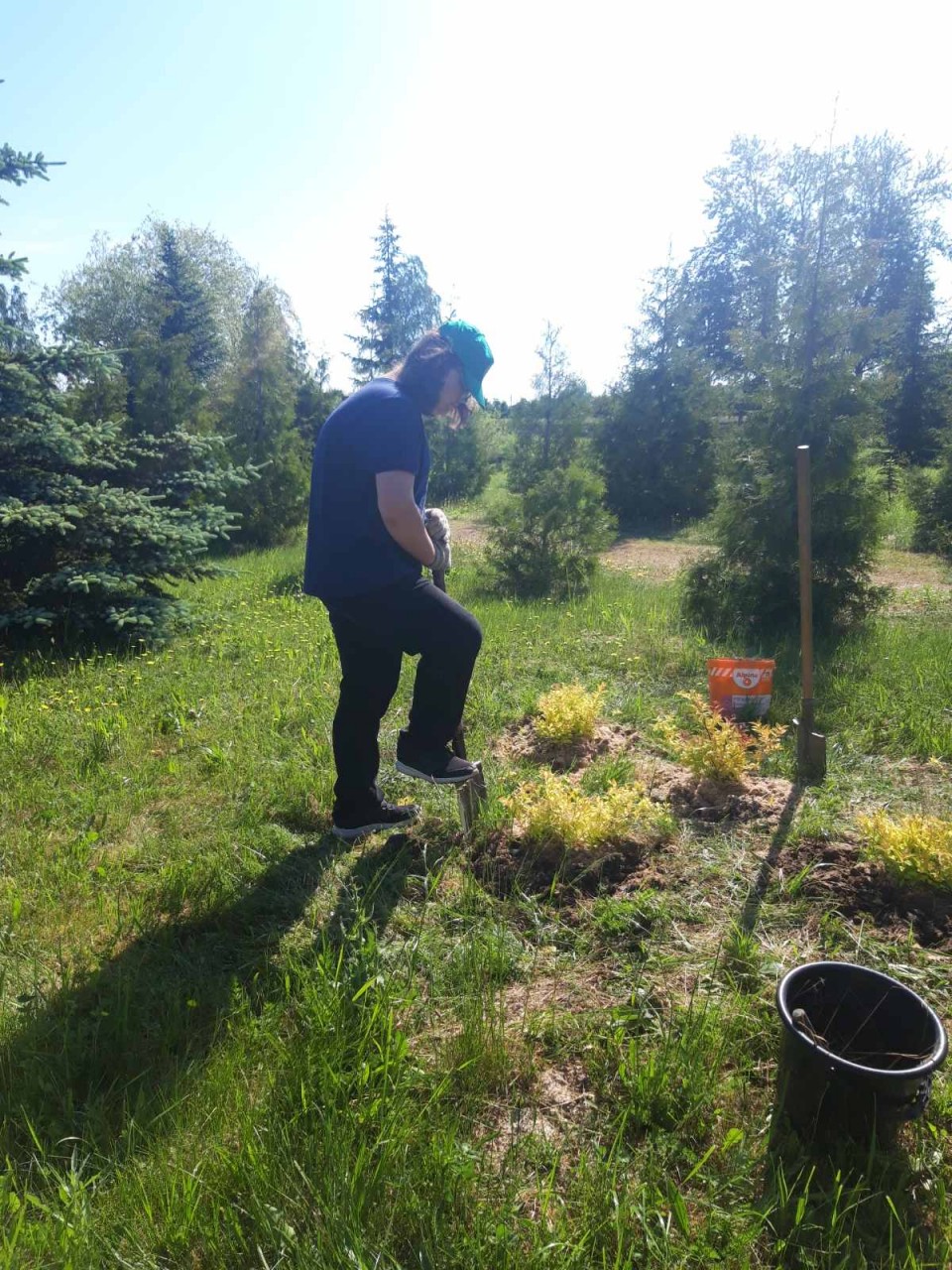 Завітала ў дэндрапарк сонечнай раніцай, дзе хлопцы і дзяўчаты пасля смачнага сняданку завіхаліся ля дагледжаных дрэў і дэкаратыўных кустоў.