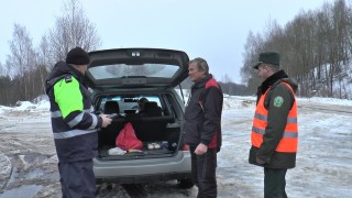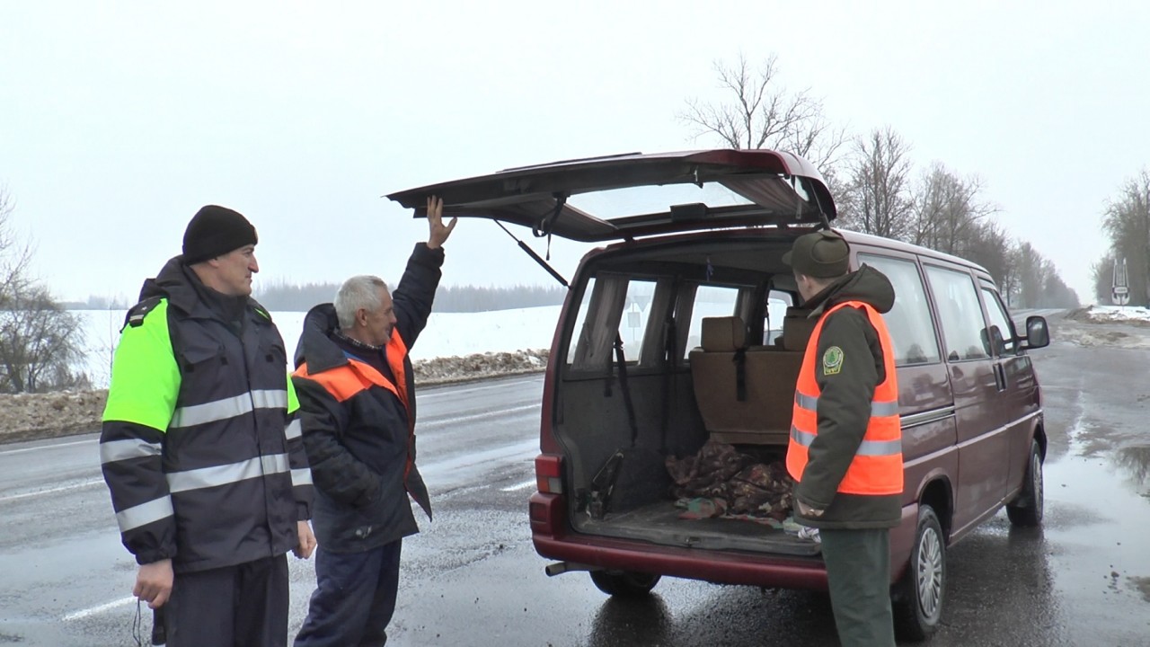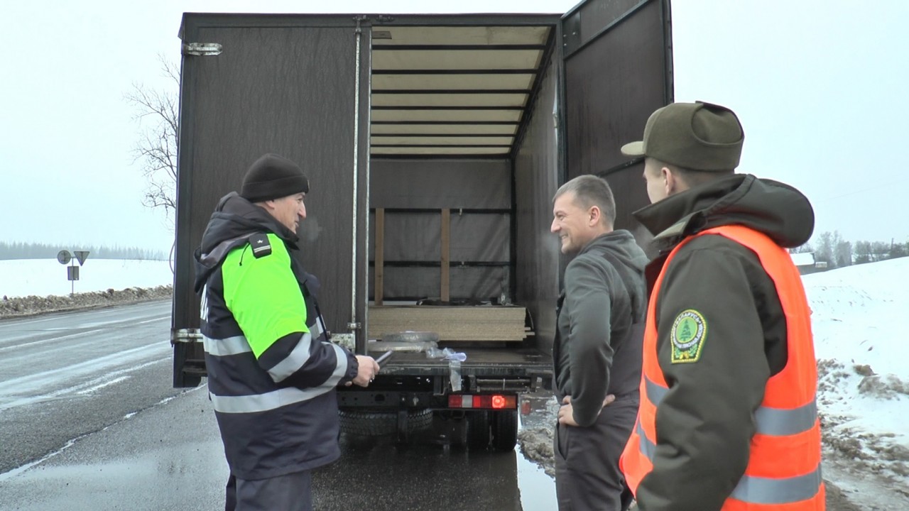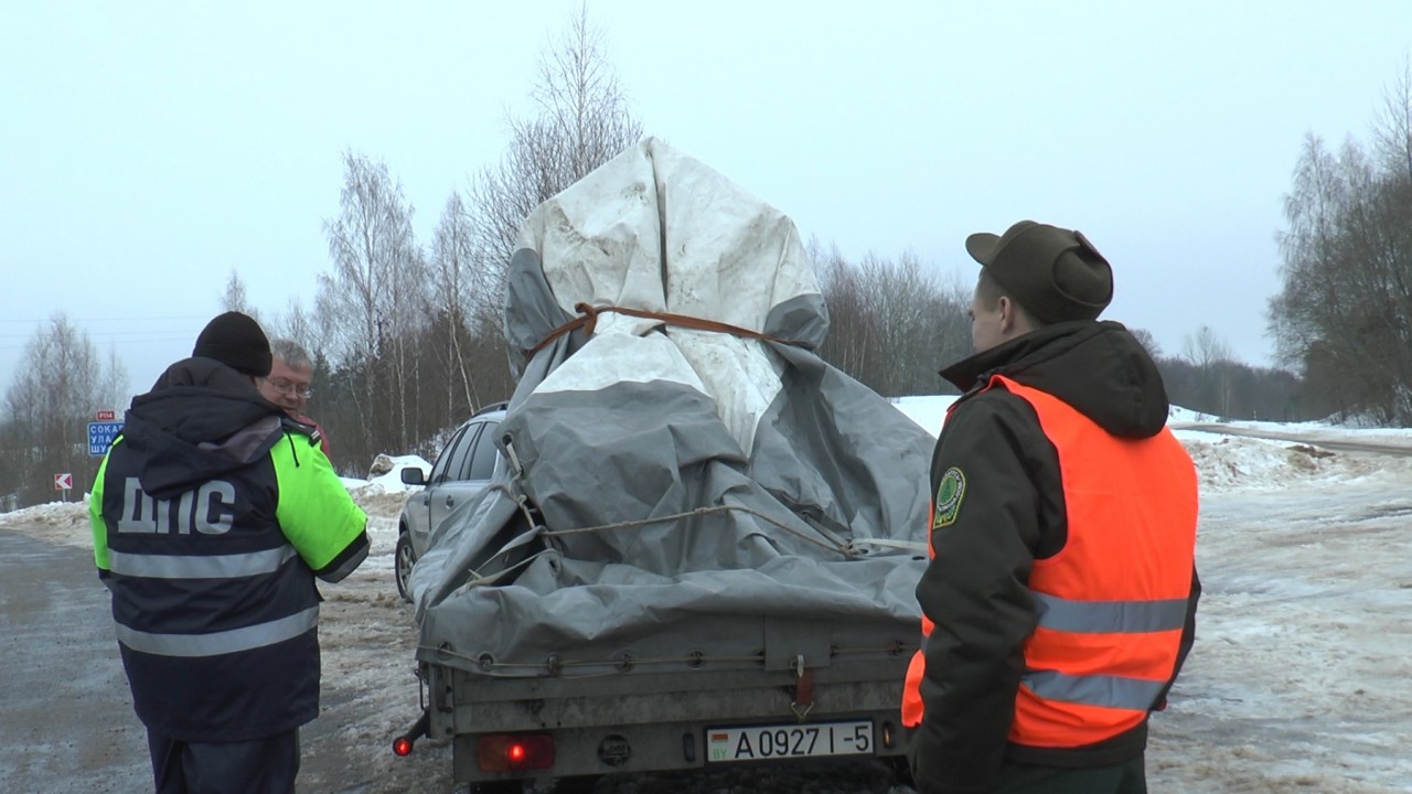 Работники государственной лесной охраны Лепельского лесхоза совместно с сотрудниками ГАИ проводят проверку автотранспорта на наличие разрешительных документов на провоз новогодних деревьев.