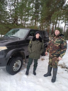 Работники государственной лесной охраны Лепельского лесхоза совместно с сотрудниками Государственной инспекцией охраны животного и растительного мира проводят проверку незаконной рубки новогодних деревьев. новогодних деревьев.