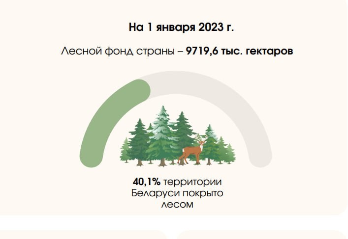БЕЛАРУСЬ ЗАНИМАЕТ ВТОРОЕ МЕСТО ПО ЛЕСИСТОСТИ СРЕДИ СТРАН СНГ Это следует из статистического обзора, подготовленного Национальным статистическим комитетом Республики Беларусь, ко Дню охраны окружающей среды. Он отмечается ежегодно 5 июня. Согласно данным на 1 января 2023 г. в нашей стране лесом покрыто 40,1 % территории. Общая площадь лесного фонда Беларуси составляет 9719,6 тыс. гектаров. При этом 100% лесных площадей охвачено долгосрочным планом управления. Площадь особоохраняемых природных территорий составляет 1904, тыс. гектаров - это 9,1% от всей площади страны. В стране функционируют 1 заповедник, 4 национальных парка, 375 заказников и 958 памятников природы. В Красной книге нашей страны - 202 вида диких животных и 303 вида дикорастущих растений. Ознакомиться с полной версией статистического обзора можно https://www.belstat.gov.by/upload-belstat/upload-belstat-pdf/oficial_statistika/statobzor-okr_sreda-2023.pdf