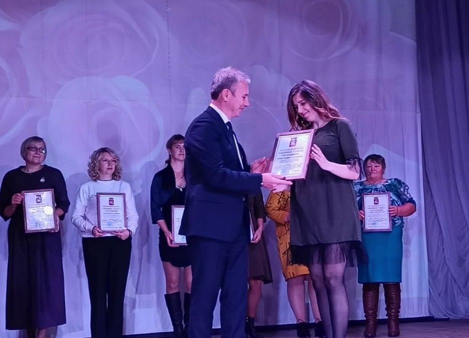 Заместитель председателя райисполкома Виктор Азаренок вручил Почетную грамота Демке Татьяне Владимировне, за высокий нравственный пример в укреплении семьи и воспитании детей, активное участие в общественной жизни района и в связи с праздником – Днём матери