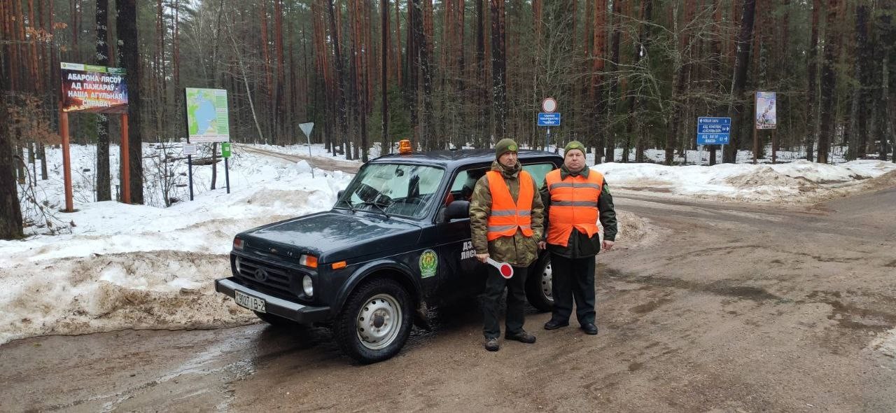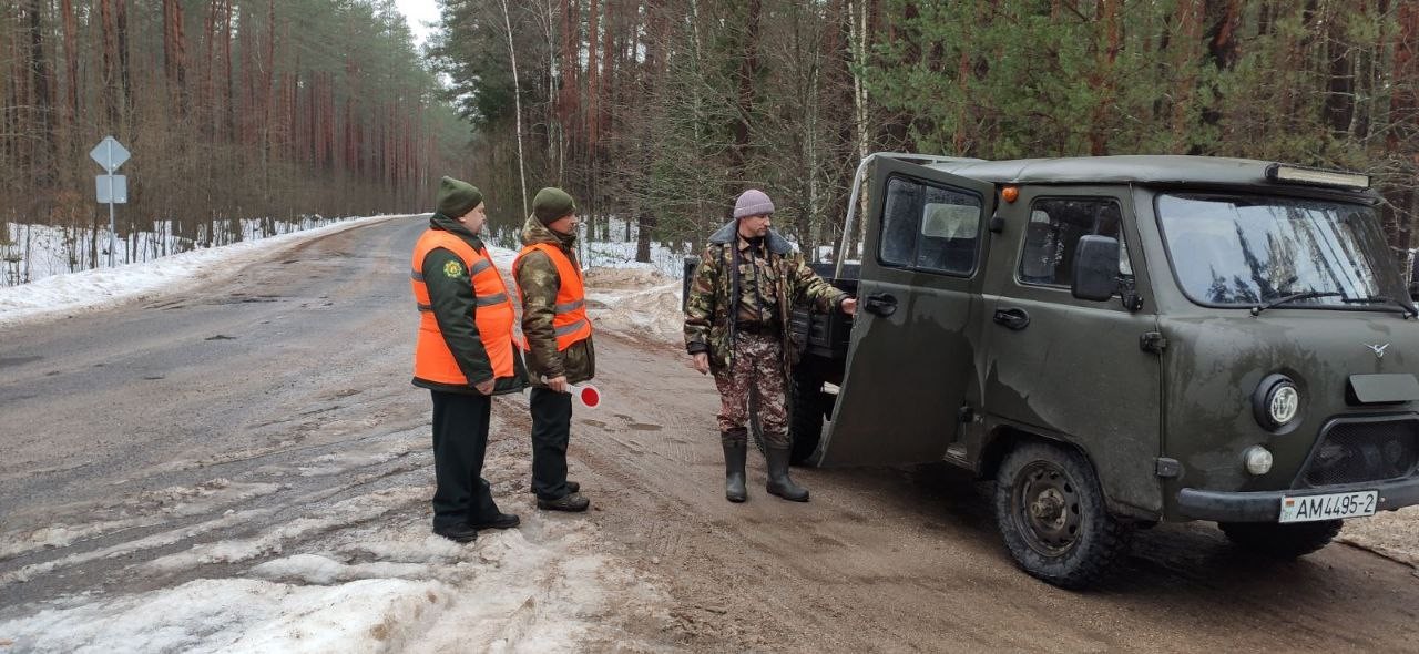 Работники государственной лесной охраны Лепельского лесхоза проводят проверку автотранспорта на наличие разрешительных документов на провоз новогодних деревьев