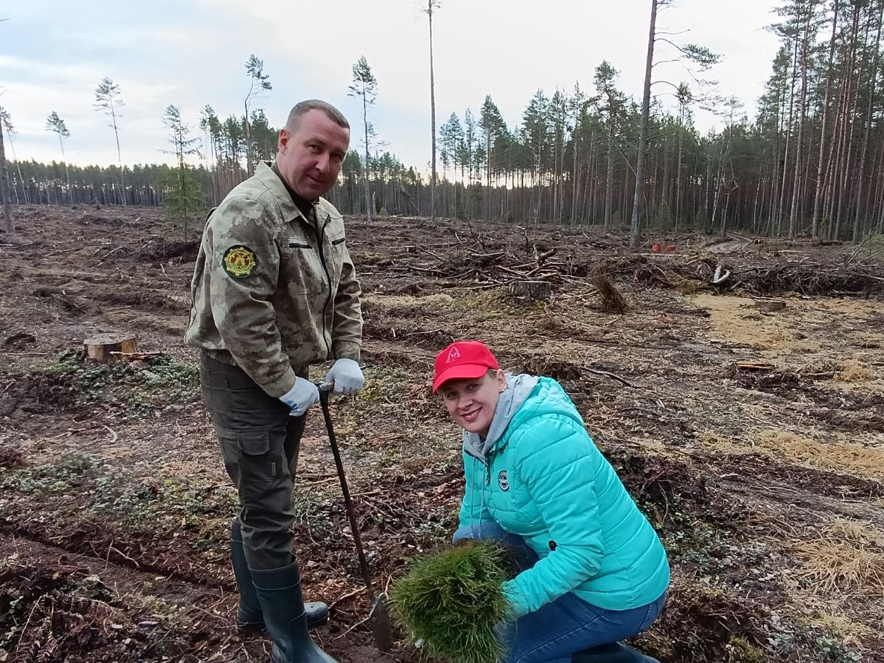 Сегодня не только работники лесхоза, но и жители г.Лепеля и Лепельского района приняли участие в восстановлении леса в Слободском лесничестве на участке, пострадавшем от ураганных ветров.