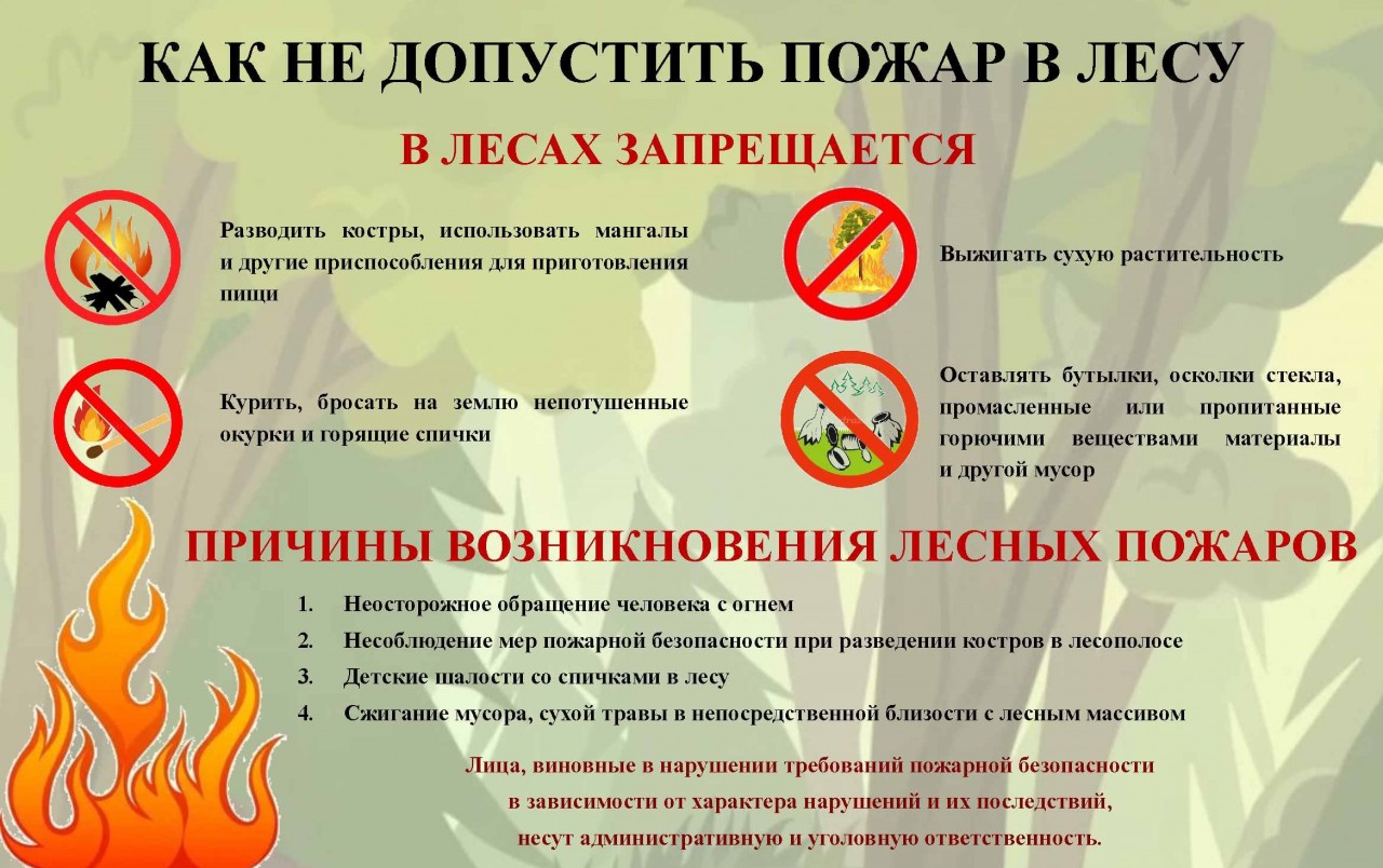 Лес – одно из национальных богатств Беларуси. Он является источником материальных ресурсов, чистого воздуха, местом здорового отдыха для человека. Один из злейших врагов леса – пожары. Главной причиной этого по-прежнему остается безответственное поведение людей. Большинство возгораний происходит в местах пикников, сбора грибов и ягод. Непотушенные костры, горящие спички и окурки от сигарет, искры из выхлопных труб транспорта, сжигание мусора вблизи лесных массивов часто приводят к непоправимым последствиям. Чтобы не испортить отдых и не навредить окружающей среде, нужно следовать простым правилам безопасности: